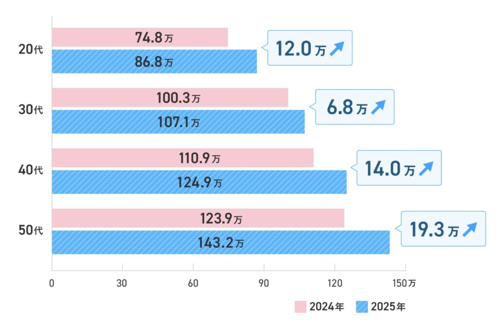 一般の調査によると、2025年の民間企業における年間ボーナス平均支給額は 約 120.7万円 となりました。前年(106.7万円)から約14万円の増加。